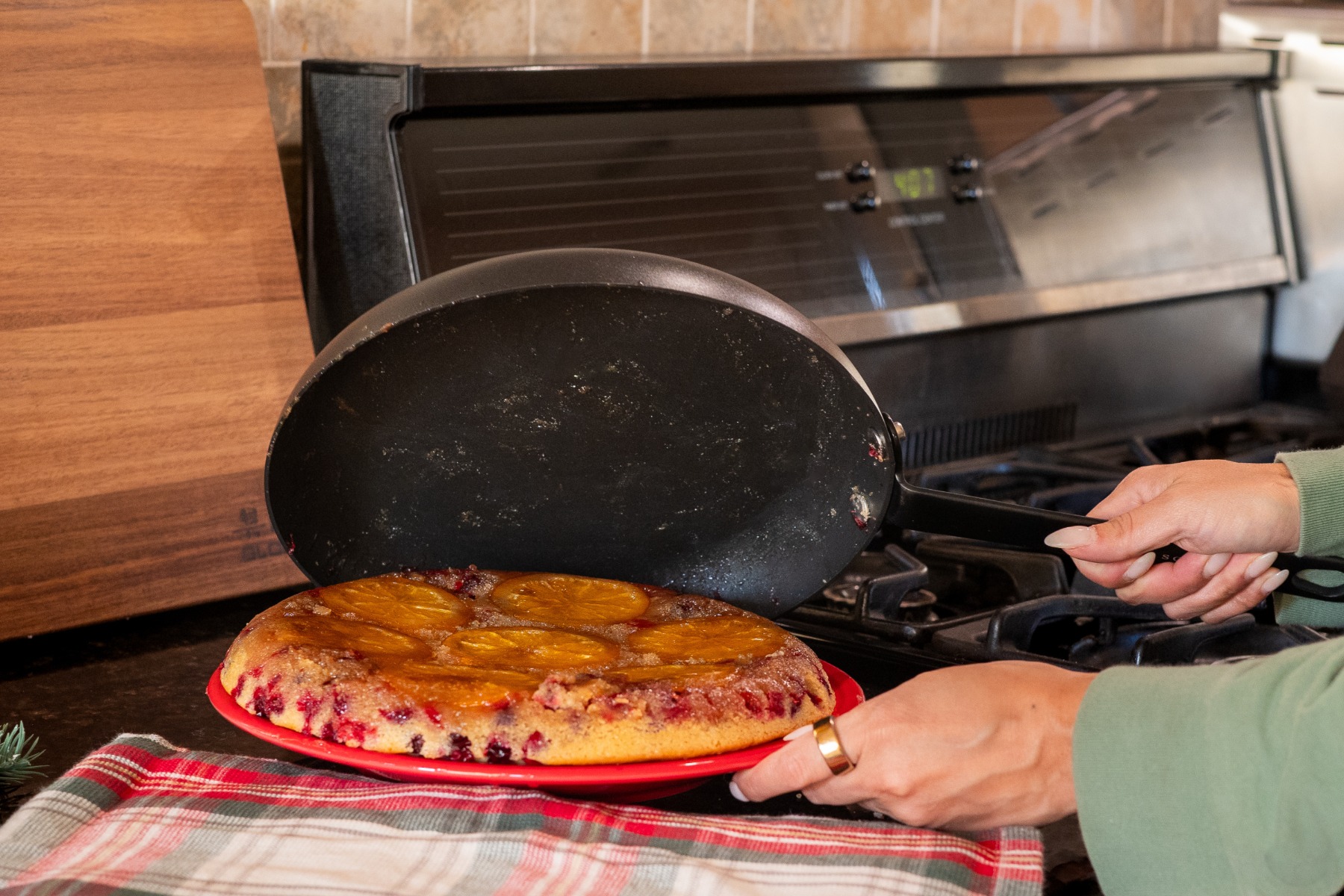 We're leaning into that versatility with a stunning Upside-Down Cranberry-Orange Cake baked entirely in an 10.25" SCANPAN fry pan. It’s vibrant, caramelized, citrusy, and the perfect dessert for the holiday season.
